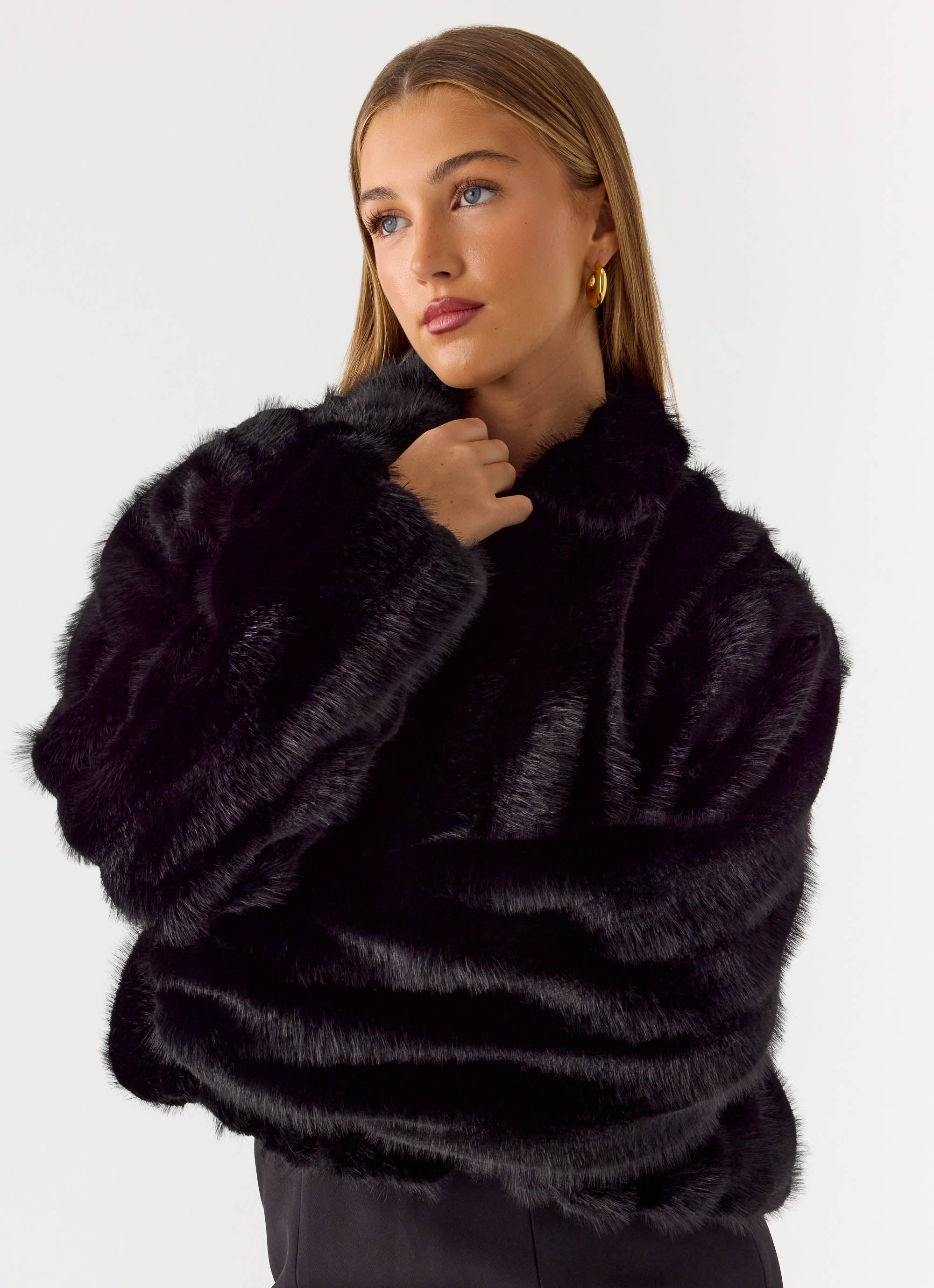 The Naylor Faux Fur Jacket is pure after-dark luxury. Featuring a single collared neckline, a fully lined design, and sleek side seam pockets. Soft, bold, and made for golden skies and midnight escapes.