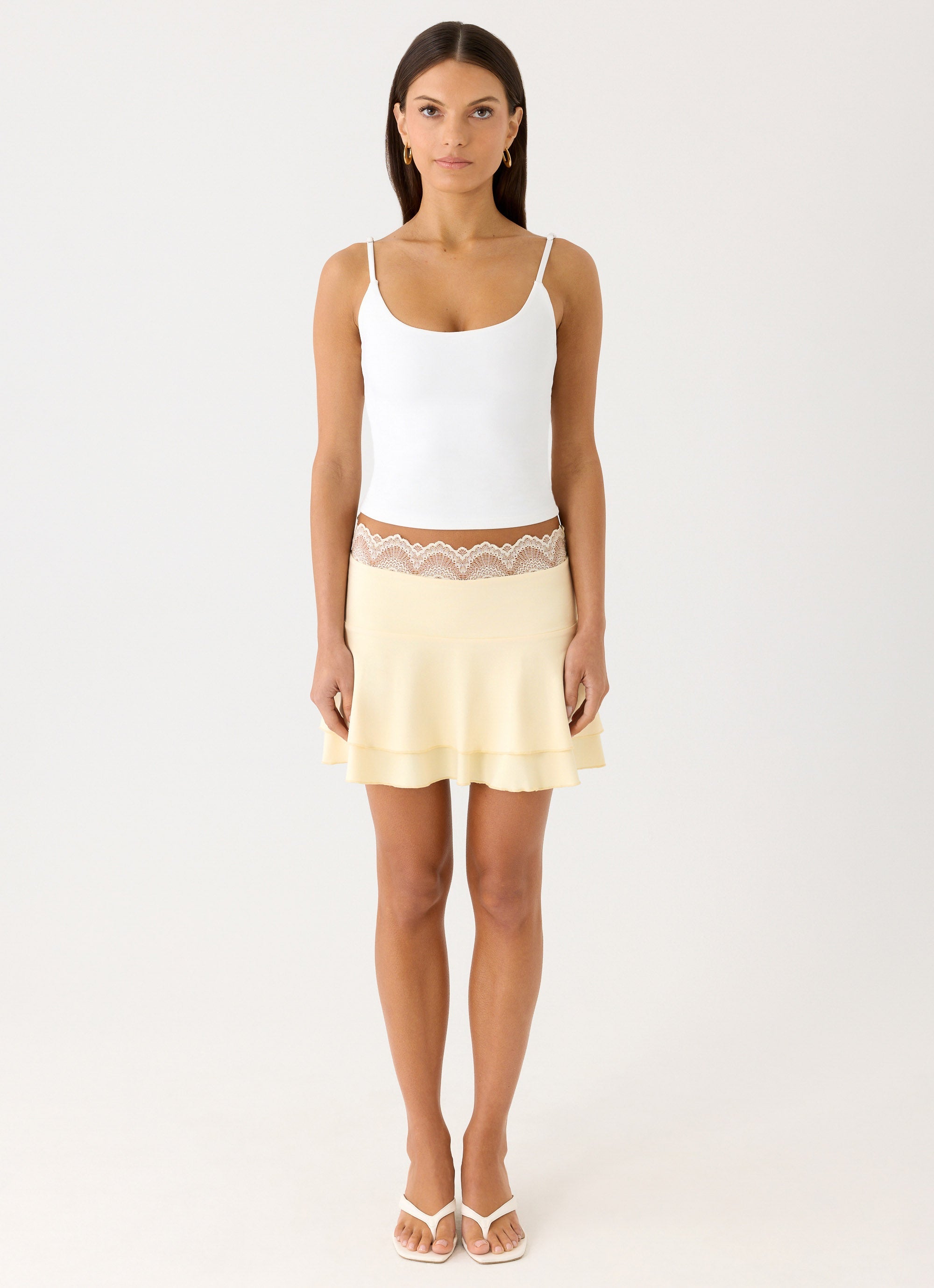 The Aleenah Mini Skirt is made for afternoons that stretch into golden-hour nights. Featuring a low-rise fit and tiered ruffle hem, this mini-length skirt moves with effortless, playful energy. Fully lined for a polished finish, it’s designed to flatter and flow with ease.