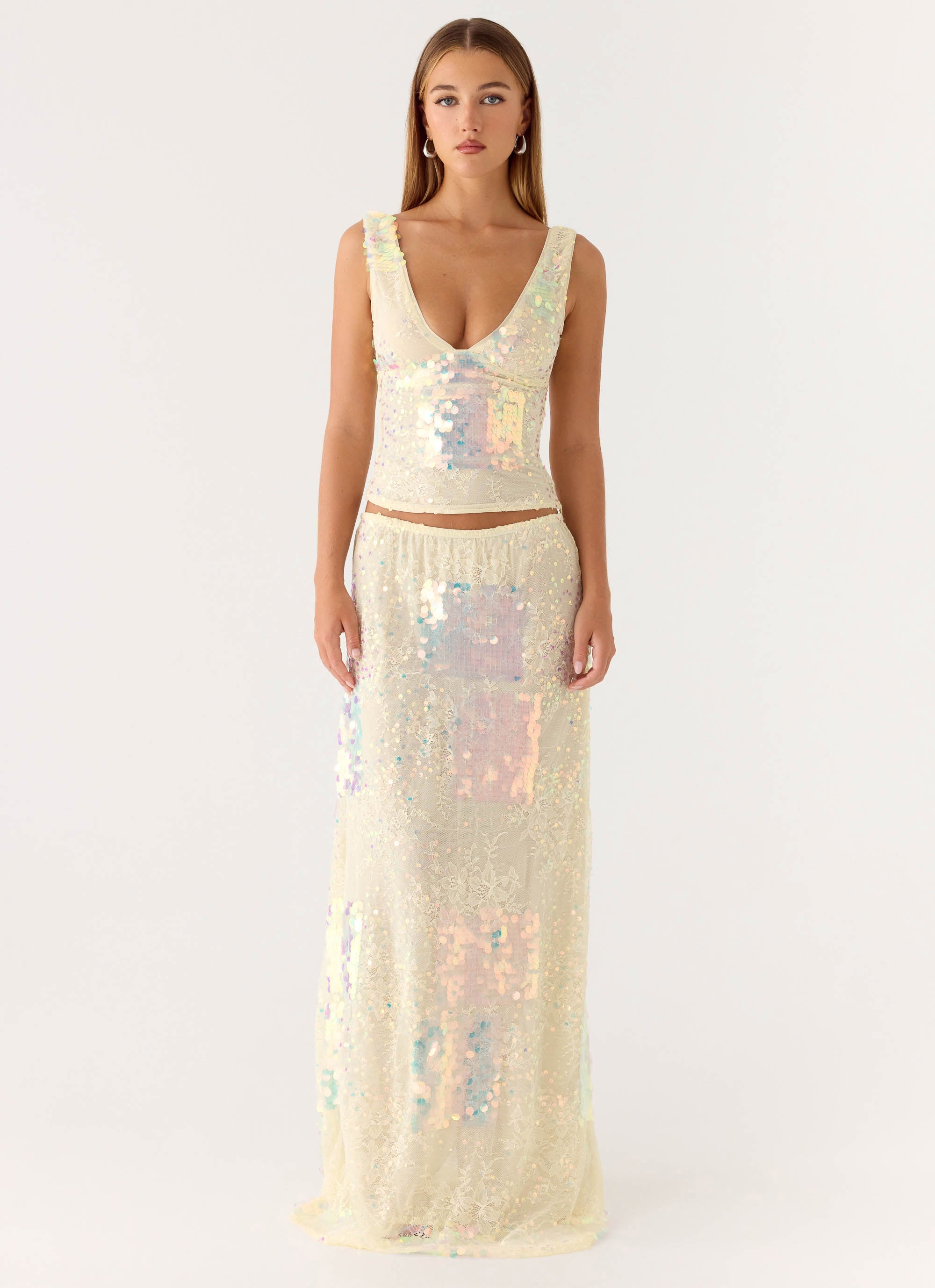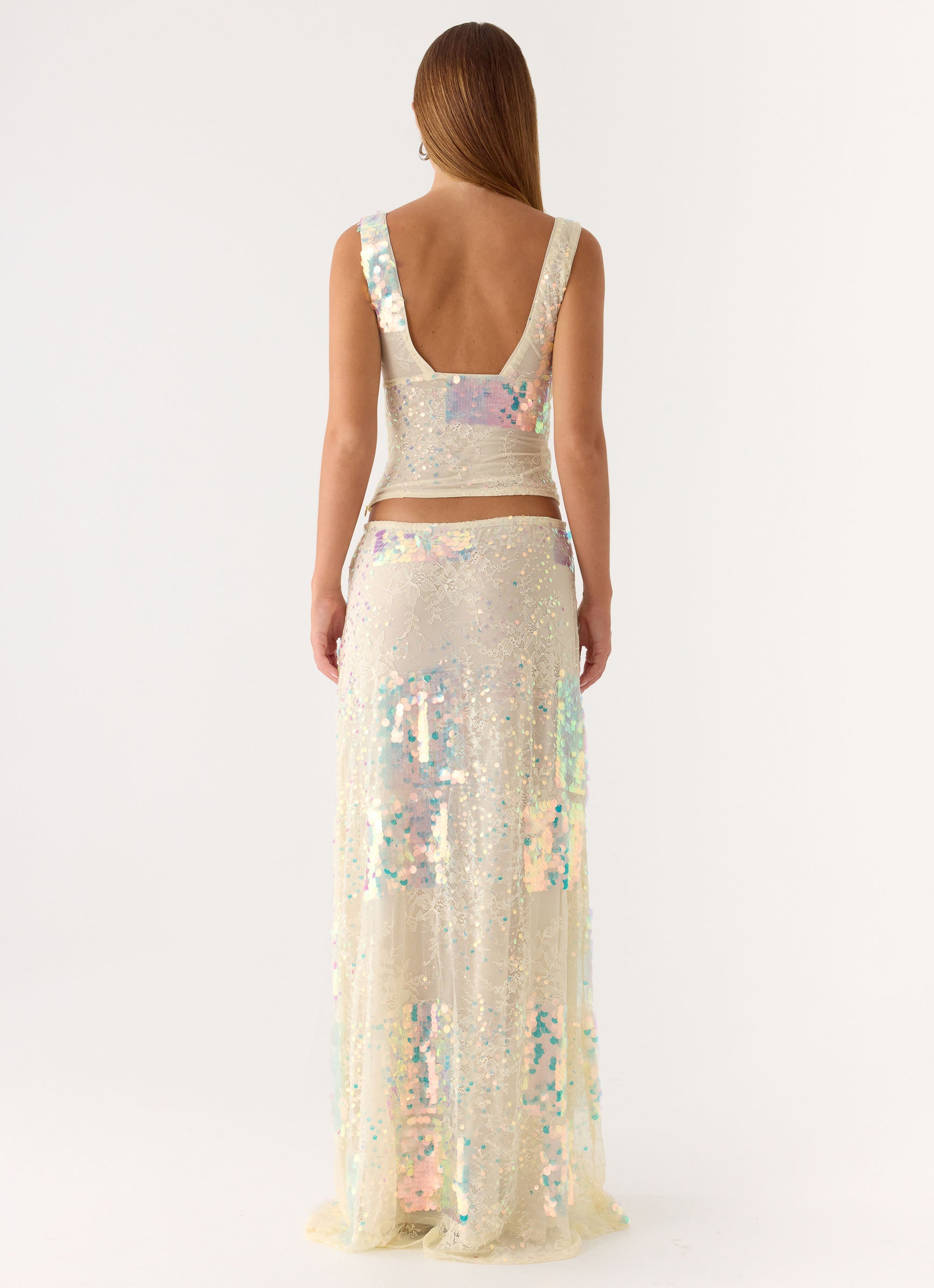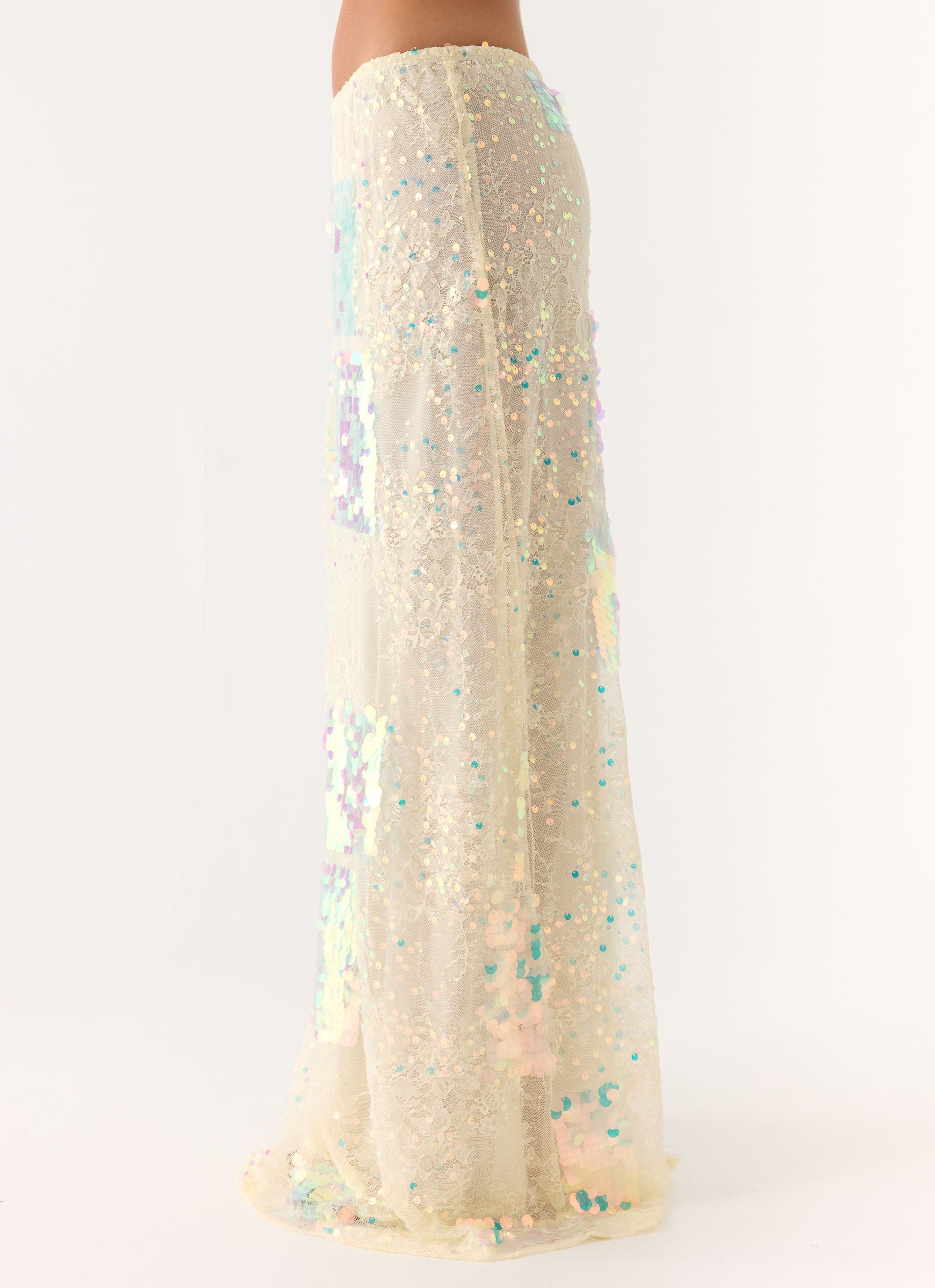 The Erinah Sequin Maxi Skirt combines sleek sophistication with all-over shimmer for a head-turning silhouette. Designed with a flattering elasticated waistband and flowing maxi length, it glides effortlessly while staying comfortable. Delicate lace detailing adds a refined, feminine touch, while the full lining ensures ease of wear—making it perfect for standout occasions.