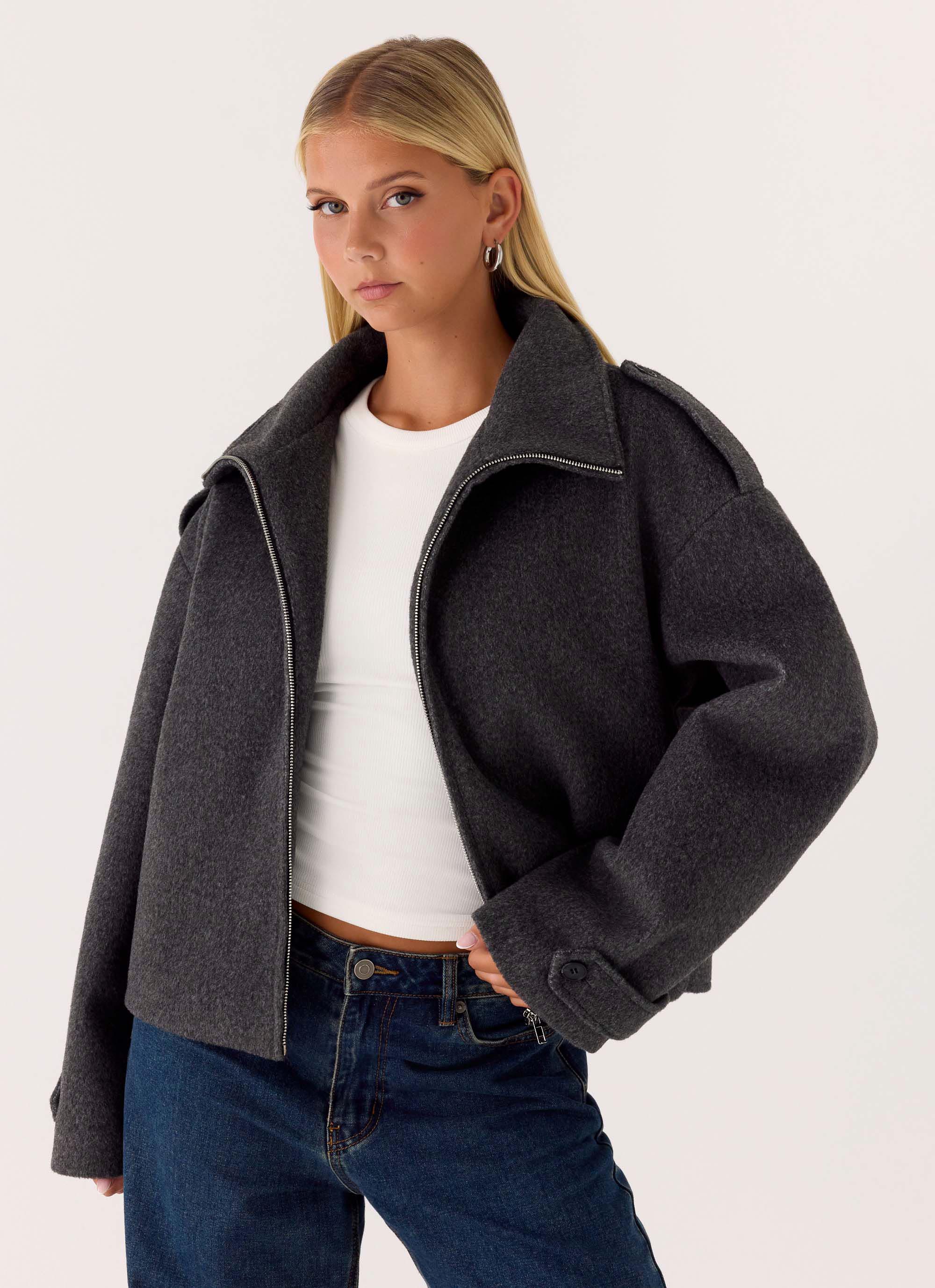 Peppermayo Exclusive - Kaiden Faux Wool Bomber Jacket - Charcoal