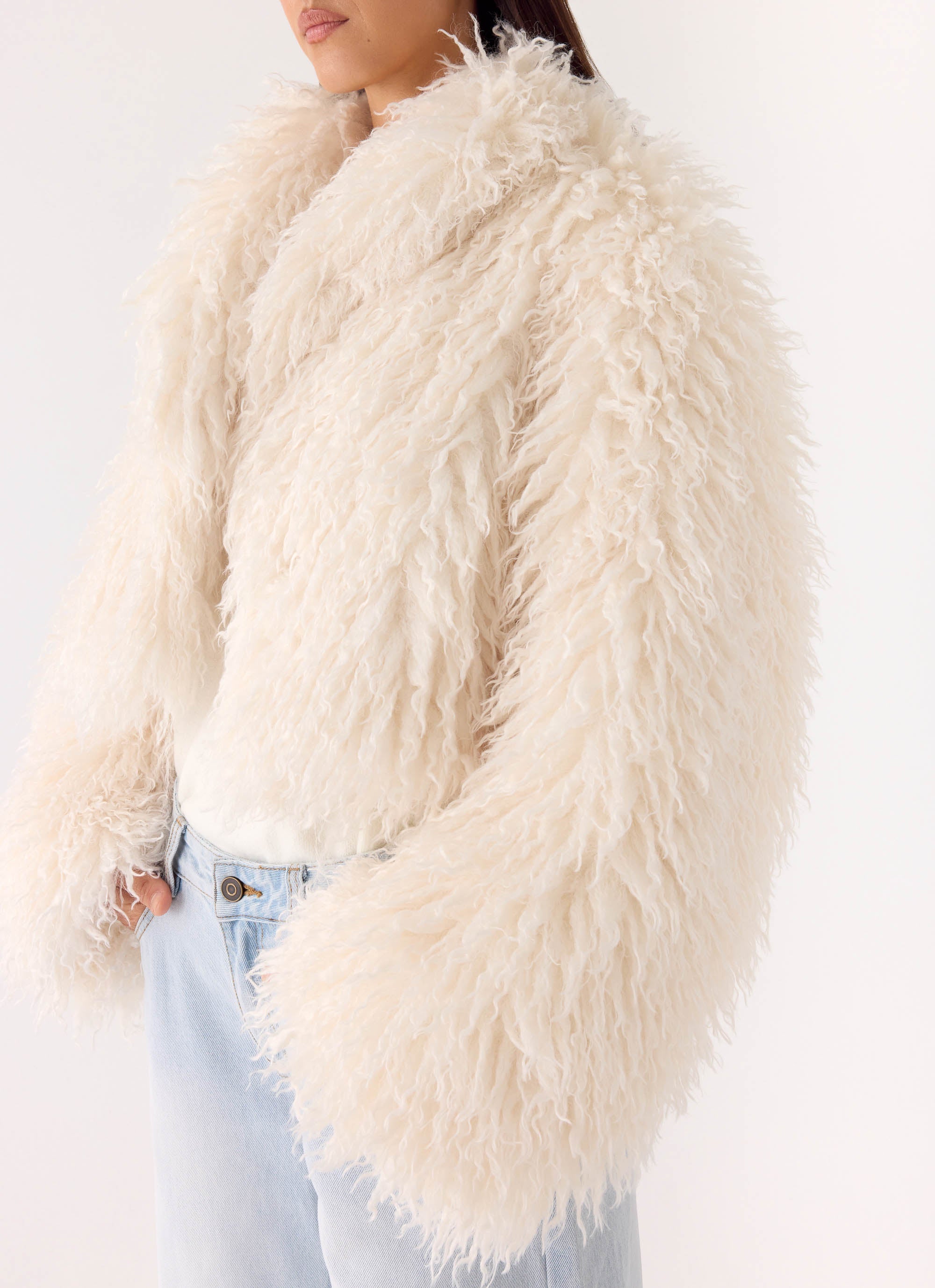 Peppermayo Exclusive - Virginia Cropped Faux Fur Jacket - Ivory